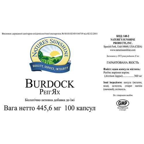 Состав - 1 капсула: репейник корни (Arctium lappa) - 360 мг.