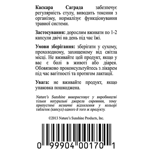 Состав - 1 капсула: кора жостера (Rhamnus purshiana) - 390 мг.
