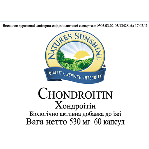 Хондроитинсульфат – это сульфатированное производное глюкозаминогликанов (протеогликанов), которые составляют основу соединительной, хрящевой и костной ткани. Является структурным компонентом хряща, вырабатывается хрящевой тканью суставов и входит в состав синовиальной жидкости. Необходимым компонентом хондроитинсульфата является глюкозамин, недостаток которого в составе синовиальной жидкости может вызвать хруст в суставах. Особенностью хондроитина среди протеогликанов является его способность сохранять воду в составе хряща. Хондроитинсульфат инициирует процесс фиксации серы в ходе синтеза хондроитинсерной кислоты, что, в свою очередь, способствует отложению кальция в костях. Стимулирует синтез гиалуроновой кислоты, укрепляя соединительнотканные структуры хряща, сухожилий, связок, кожи и угнетает действие ферментов, разрушающих соединительную ткань, в том числе лизосомальных ферментов, высвобождающихся в результате разрушения хондроцитов (эластаза, пептидаза, катепсин). Оказывает анальгетическое и противовоспалительное действие, способствует активной регенерации хряща, уменьшает боли в суставах и позвоночнике в состоянии покоя и при ходьбе. Регулярное употребление хондроитина снижает, а иногда и полностью устраняет необходимость приема нестероидных противовоспалительных препаратов. Показанием к применению являются: дегенеративно-дистрофические заболевания суставов и позвоночника, первичный артроз, межпозвонковый остеохондроз, остеоартроз, остеопороз, переломы. При приёме хондроитинсульфат блокирует активность панкреатической липазы и замедляет всасывание жира в кишечнике. При длительном применении хондроитинсульфата снижается уровень гиперлипидемии и гиперхолистеринемии и масса тела.