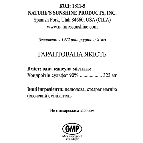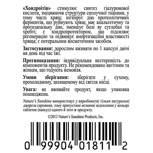 Состав - 1 капсула: хондроитинсульфат - 323 мг (53,8% от АСП).