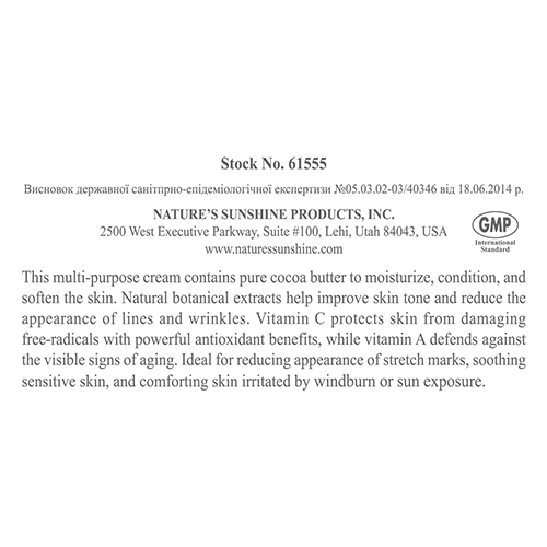 - Увлажняет, питает и оказывает кондиционирующее действие на кожу благодаря входящему в состав крема маслу какао-бобов