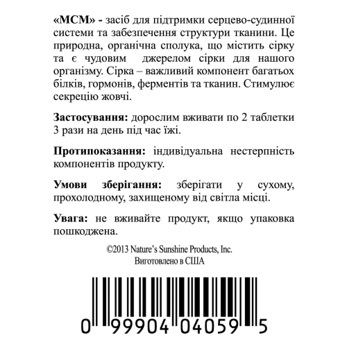 БАД к пище МСМ НСП является дополнительным источником серы в органической форме.