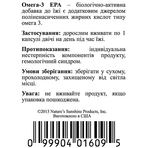 БАД к пище Омега-3 (ПНЖК) НСП является дополнительным источником полиненасыщенных жирных кислот омега-3, содержит витамин Е.