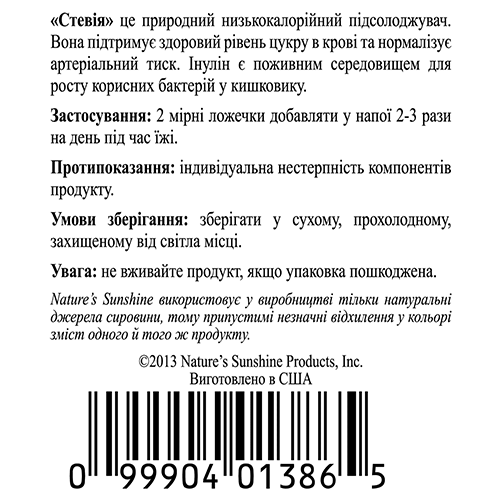 В Стевия компании NSP входит концентрированный экстракт стевии. Ее можно рекомендовать людям с лишним весом, при повышении холестерина и сахара в крови, а также использовать как подсластитель для напитков, кулинарных блюд (каши), кондитерских изделий, выпечки. Всостав препарата включен инулин, который является пребиотиком и служит питательной средой для бифидо- и лактобактерий.